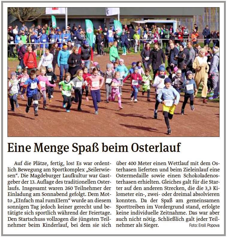 Ein Bericht in der Volkstimme vom 19.04.2022 „Eine Menge Spaß beim Osterlauf“