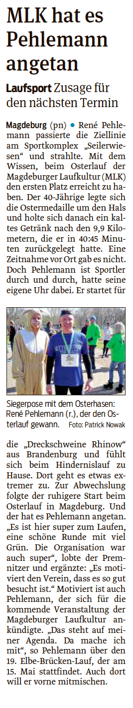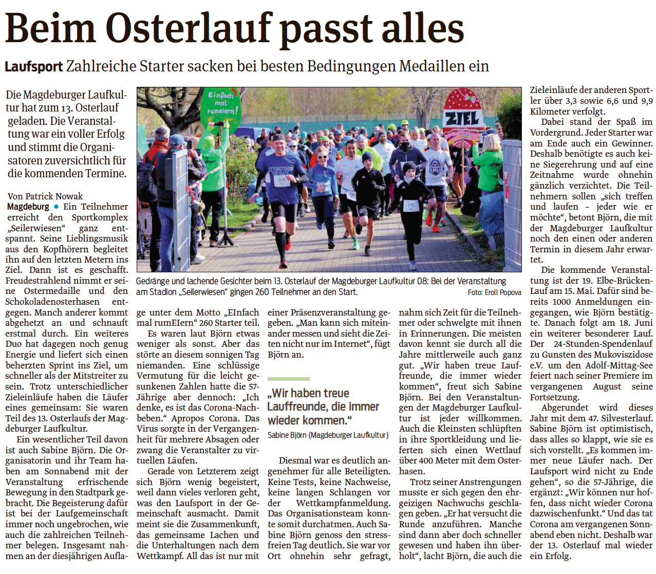 Ein Bericht in der Volkstimme vom 20.04.2022 von Patrick Nowak „Beim Osterlauf passt alles“